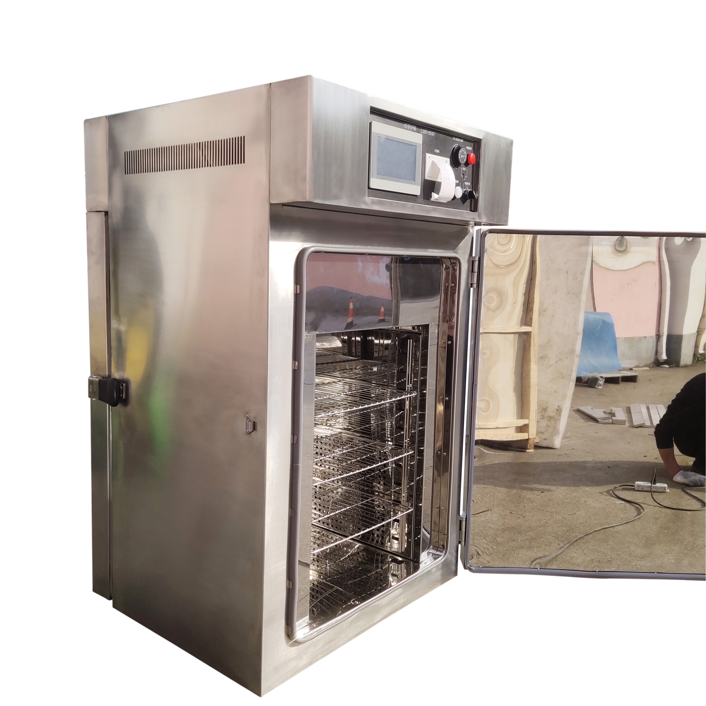 箱體基本結(jié)構(gòu) | 前后雙開門、電器控制界面置于上面、加熱循環(huán)置于側(cè)面,底部無移動(dòng)腳輪 |