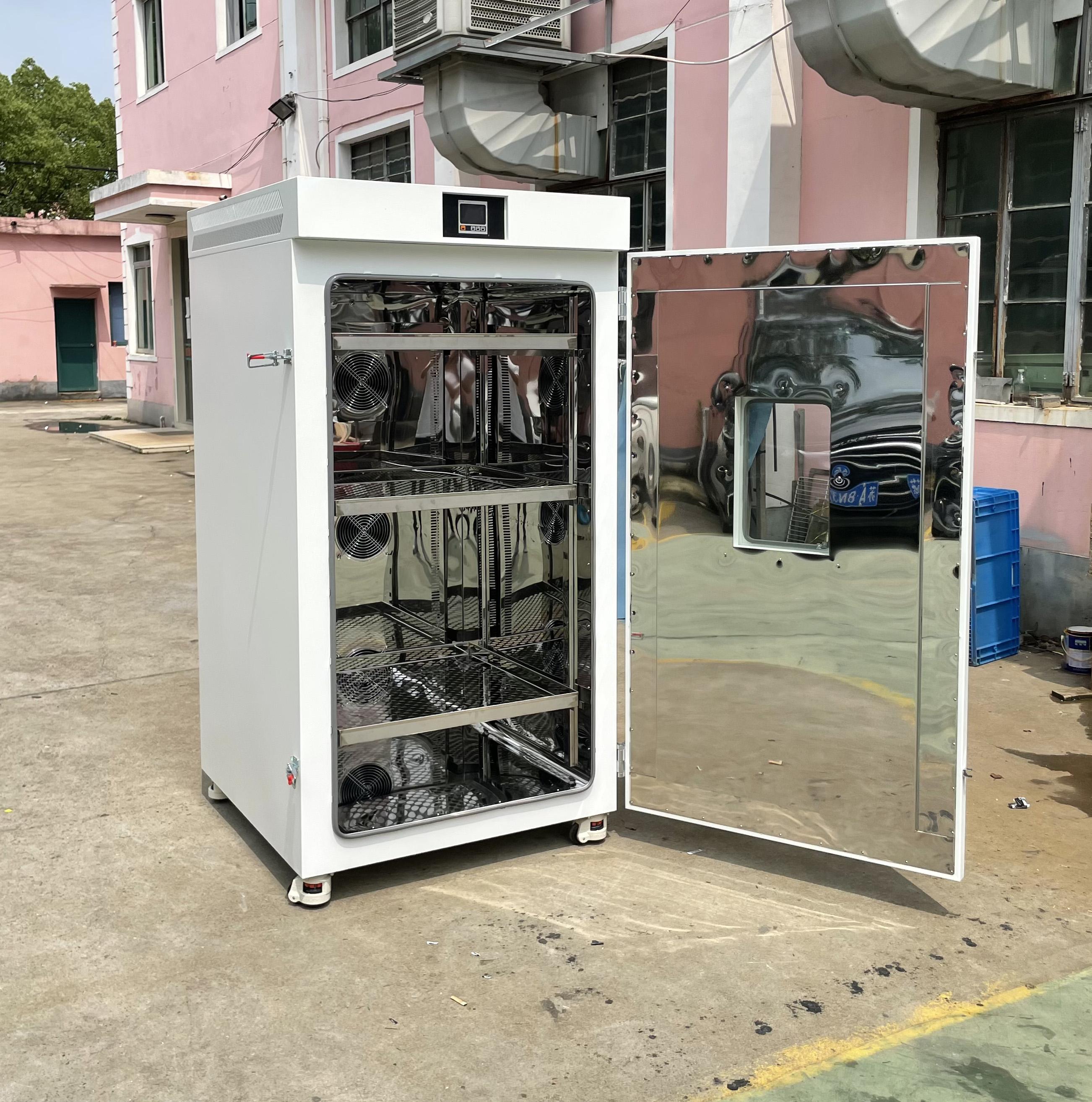 5. 電熱鼓風(fēng)恒溫干燥箱儀器具有跟蹤報(bào)警功能攪拌式熱風(fēng)循環(huán),熱損失小,鼓風(fēng),加熱可獨(dú)立操作。