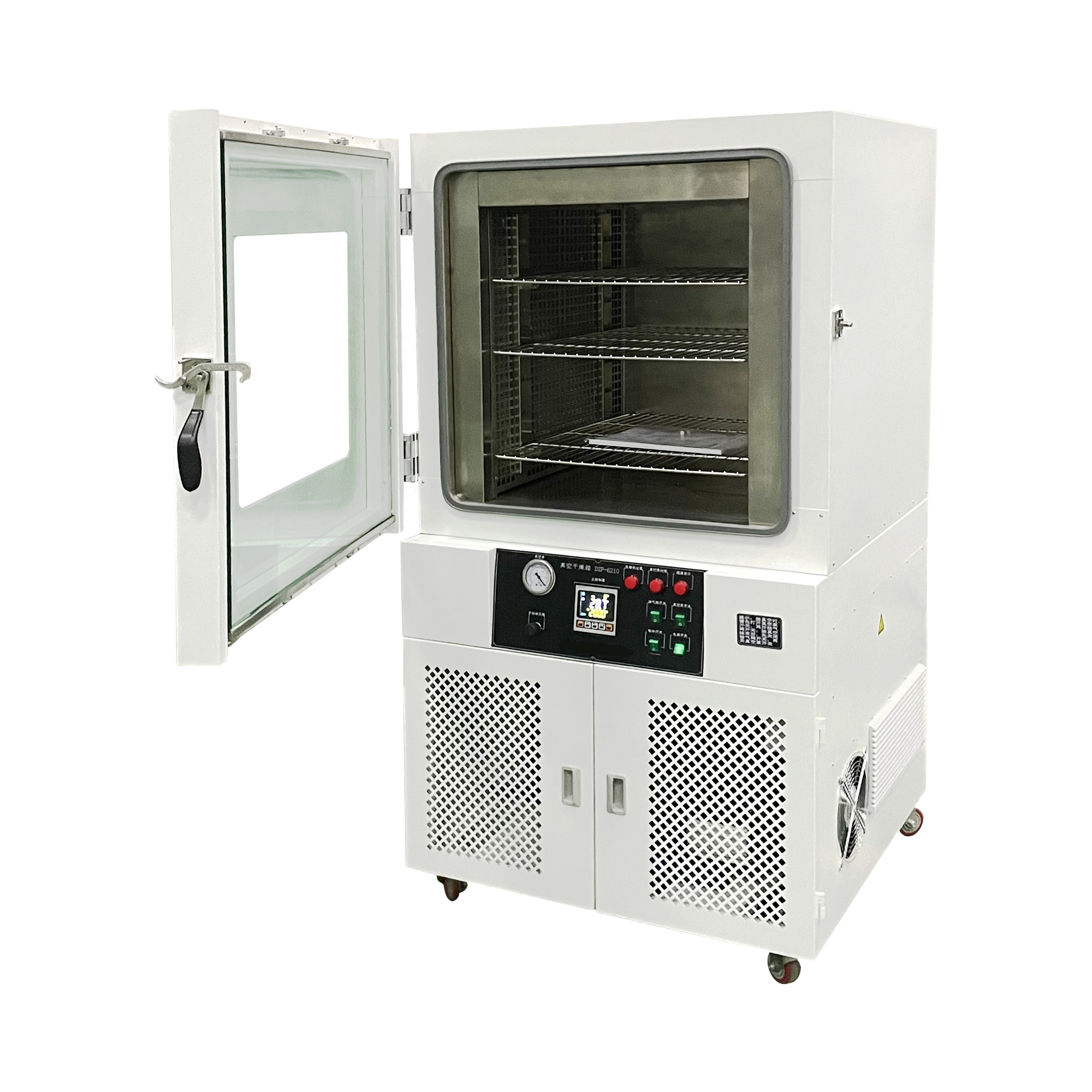 2. 雙層鋼化玻璃門(mén)、觀察工作室內(nèi)物體一目了然。