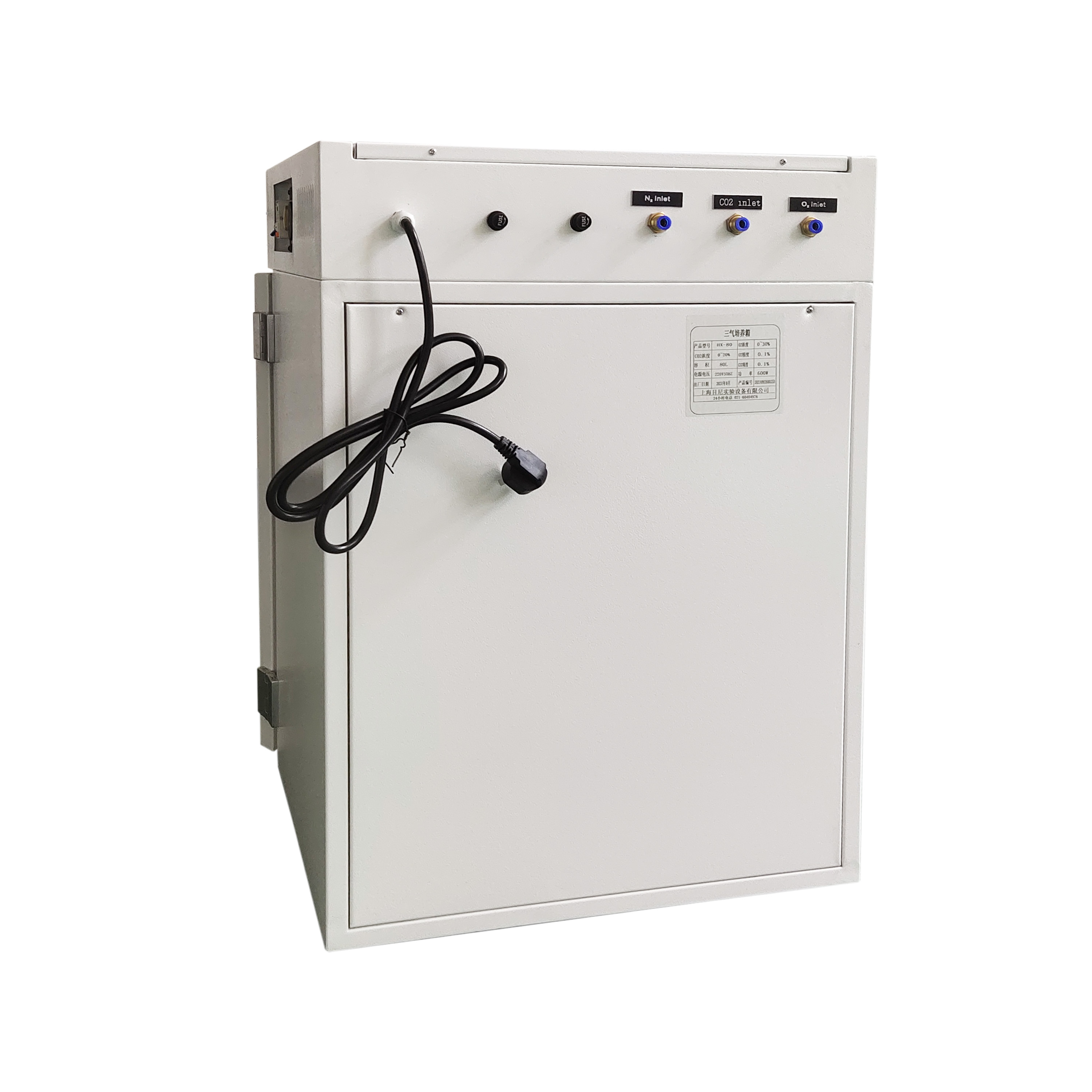 2. 采用氣套式結(jié)構(gòu)、工作室采用優(yōu)質(zhì)不銹鋼板制作并設(shè)有風(fēng)道、裝有風(fēng)機(jī)形成強(qiáng)制對(duì)流、提高了箱內(nèi)溫度均勻性co2,O2濃度的均衡性。